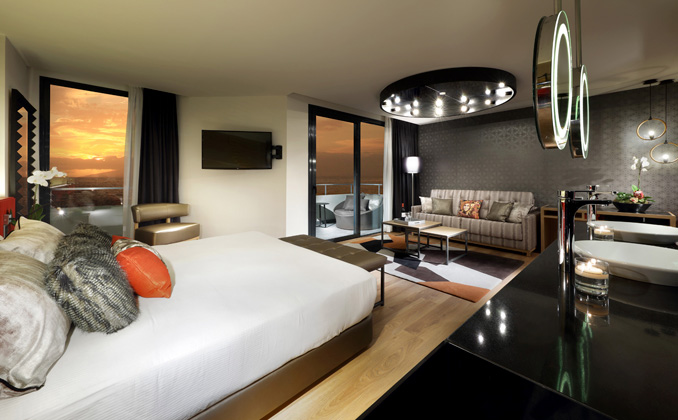 Fully-equipped 35-m2 rooms with a king-size bed or 2 twin beds, living room with sofa bed and all the VIP services included in the Rock Royalty Level.