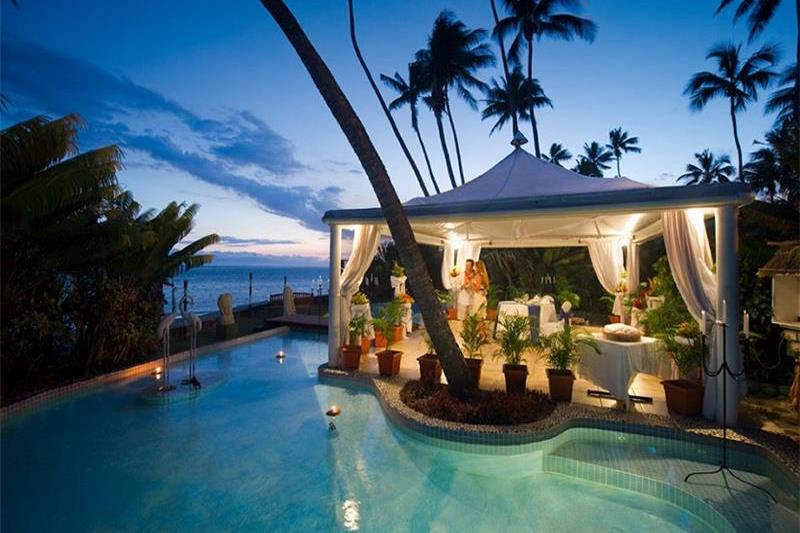 Hideaways - a right-hand reef break, only a short paddle in front of Hideaway Resort. It’s a hollow, fast, ledgey barrel, but only good around high tide. Starts working at less than 3ft and holds up to 6ft plus. Year-round wave, although it is more consistent from May to October. Recommended for experienced surfers only. The spa provides an ultimate pampering experience with a tranquil reflection pool and a variety of treatment bures. For a wedding in paradise, the resort offers the opportunity to exchange vows under a stunning Fijian sunset in an intimate beachfront setting overlooking the coral lagoon.