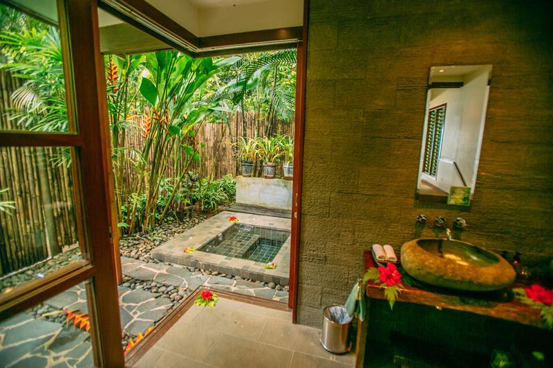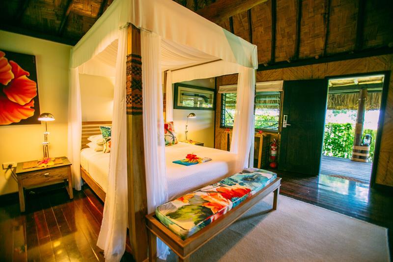 Qamea Resort & Spa’s Honeymoon Bures are designed specifically for discerning guests seeking even more luxury and romance. Both of the Honeymoon Bures have romantic canopied four poster beds with soft white decorative netting curtains and boast a bathroom of over 300 square feet with walls that slide into pockets to opens onto a private outdoor courtyard with an enticing natural stone Jacuzzi spa pool. Room Size: 85 sq/mtr