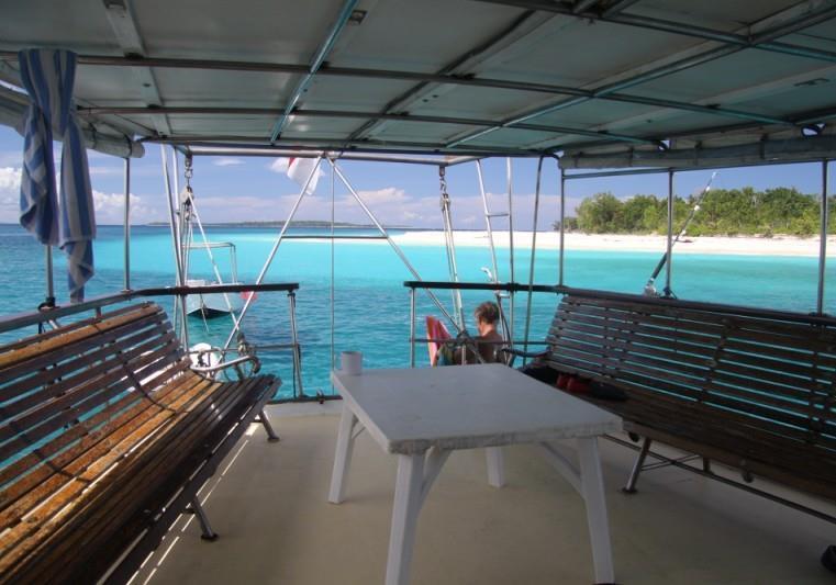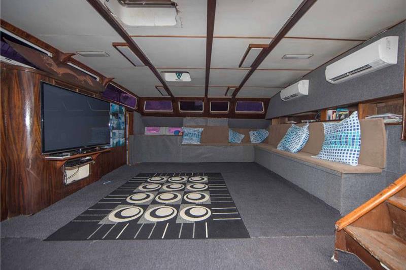 The 25 x 20ft saloon has a state of the art entertainment centre which includes TV, VCR, Digital and video play backs of days surfing. There is also a DVD / CD stereo surround sound system. On deck is spacious with a seating area for 16. It is perfect for tropical nights sampling the local cuisine and freshly caught seafood after a hard days surfing.