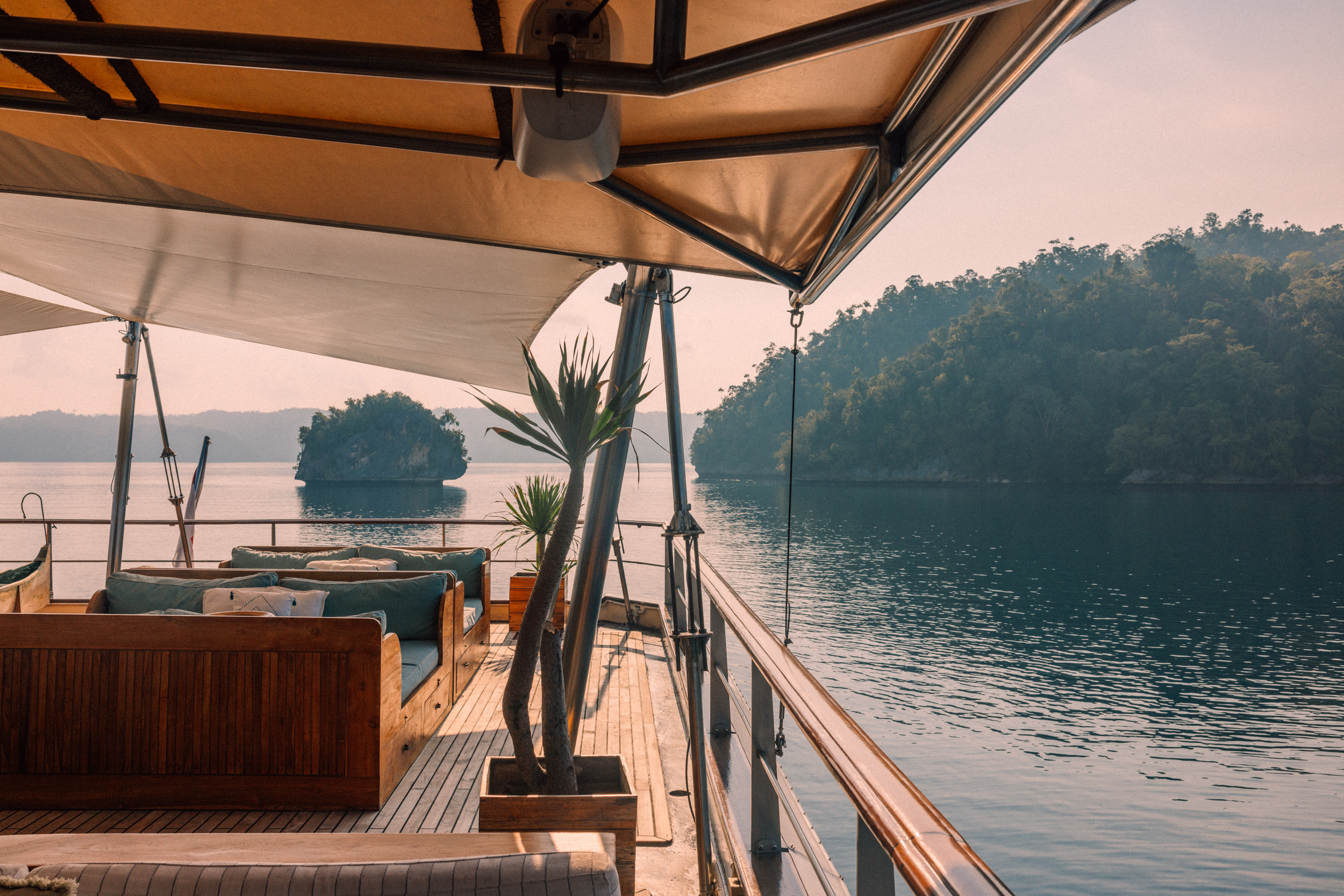 Allowing up to 16 adults & 3 children in 8 identical state-of-the-art cabins (each 30 sqm) with a private, spacious balcony (completely unique in Indonesia). Offering an unrivaled 1000 sqm / 11,000 sqft of space across 4 decks exclusively for you to use, explore the beauty of remote Indonesia in the comfort of a high-end boutique hotel. The Kudanil Explorer has the highest space per guest ratio in the market and is also the only ABS-classed charter yacht in Indonesia (ABS = American Bureau of Shipping), therefore extremely comfortable and second to none in terms of stability, safety and space. "Built for exploration, designed for comfort".