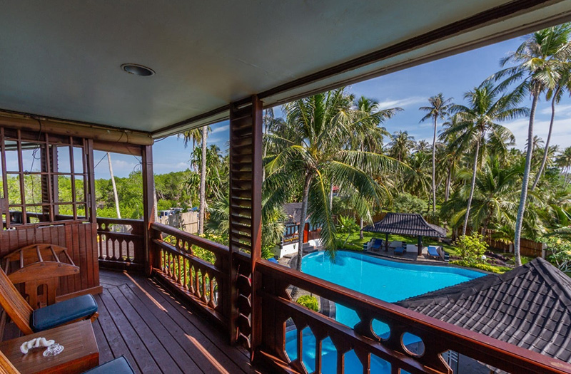 Macaronis Resort guest suites were recently refurbished in 2011 to provide extra comfort, privacy, and quality. All 16 guest suites are located on the second-floor of the resort building, elevated 8m above sea-level with spectacular ocean, lagoon, and pool views. Each suite has a 4m veranda with seating and drop-down shades for privacy.