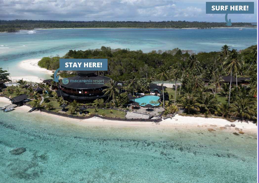 Macaronis Resort is a Mentawai surf resort with a world-class wave out front, and 6 other waves nearby. Flexible trip lengths and surf transfers available. It is the perfect option for those looking for more privacy than a boat charter, and the freedom of being of land. It is also very suitable for those that want to travel with a non-surfing partner or family.