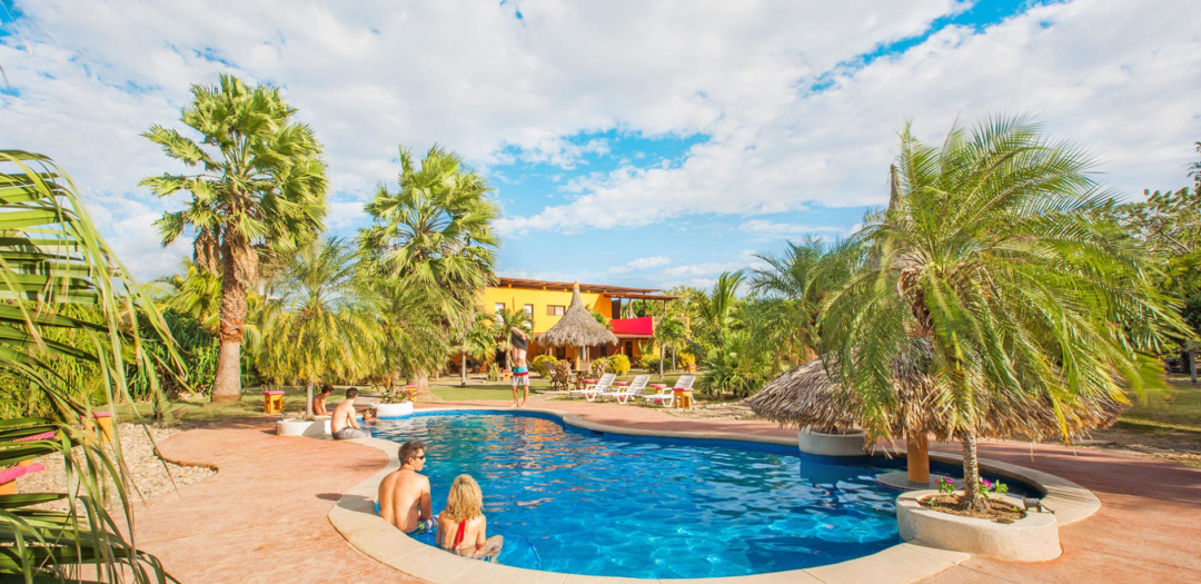 The restaurant is open for breakfast, lunch and dinner specializing in homecooked fare, fresh fish and seafood, an array of natural fruit juices, barbecues, local Nica fare and international favorites like Tacos, Pastas and Burgers. In addition to the varied menus they prepare fresh daily specials which include lobster, whole grilled tenderloins, pizza, home-made corn tacos, chicken breast strips in creamy Jalapeno sauce and more! Anytime between the hours of 7:00 AM and 9:00 PM you can enjoy an ice-cold drink and a fresh, healthy meal in the shady rancho. The swimming pool is located right in front of our restaurant allowing you to sit at its pool bar and ordering drinks from the water.