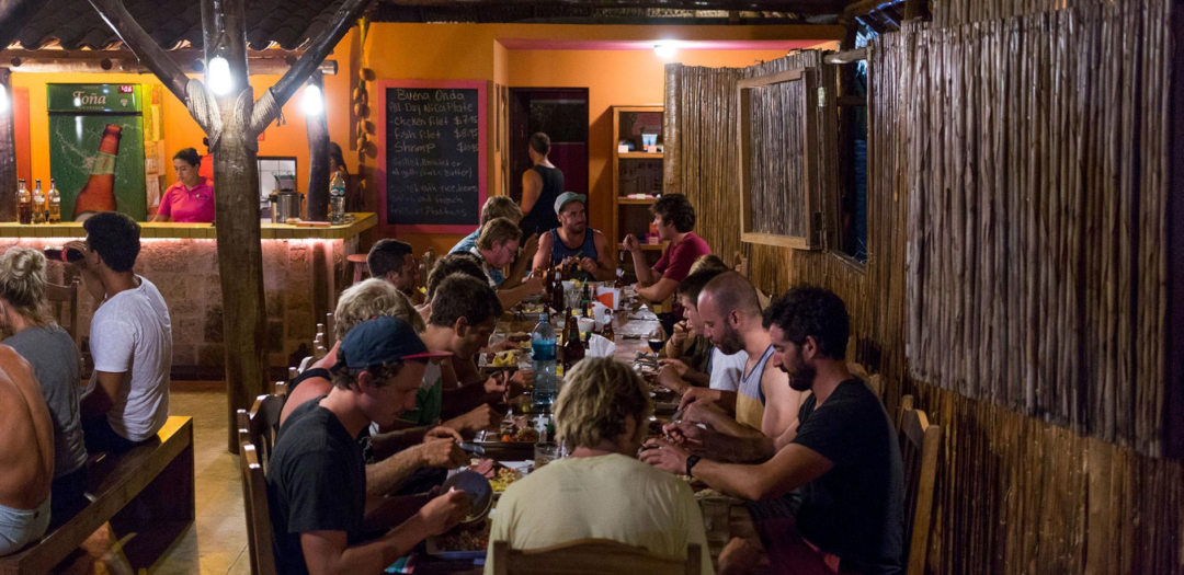 Buena Onda Beach Resort offers accommodation for every budget from dorm beds to luxurious hilltop mansions with private pools. Here you’ll find countless hammocks, tables and chairs for lounging and making friends and a wide-open view of the pool and restaurant with the ocean in the background. The design and orientation of the hotel structure was developed with the natural environment in mind. The rooms are well protected from direct sunlight by a super-structure roof, dramatically reducing radiant heat from the tropical sun. The famous Nicaraguan off-shore breezes provide refreshing ventilation, which passes through each room, creating a comfortable temperature day and night and greatly reducing the need for artificial cooling, however all rooms do have ceiling fans for additional comfort.