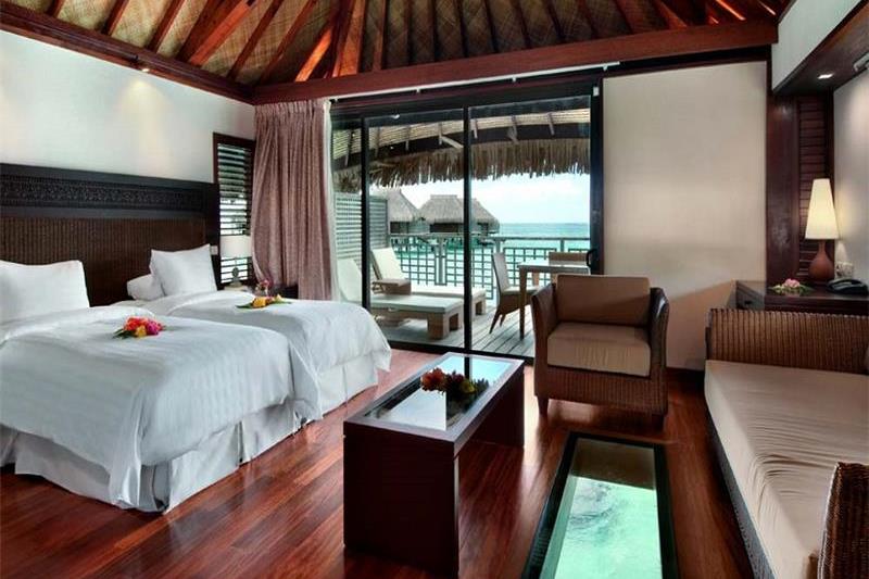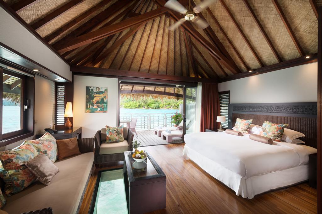 Overwater Bungalows are equipped with all the modern conveniences found in a world-class hotel. Popular with the honeymooners, the "island on an island" over-water rooms are connected by winding, wooden walkways built on stilts over the lagoon.