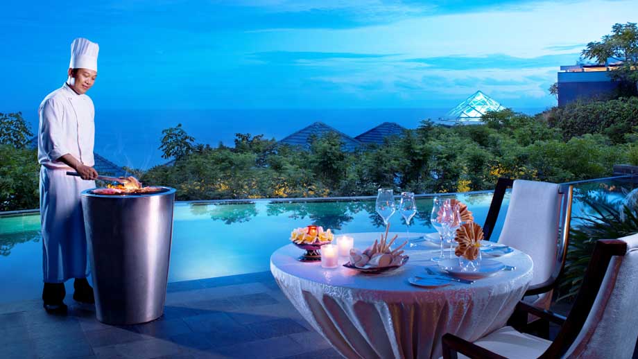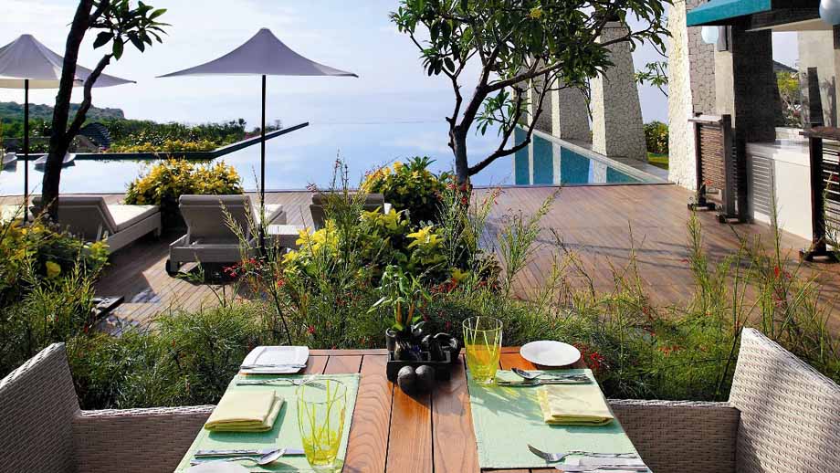 Gourmet experiences await at Banyan Tree Ungasan Bali: In-Villa BBQ, The barbeque of your dreams, Pool Bar, Relax in the sun, Bambu Restaurant, International favourites in a casual setting, Ju-Ma-Na Restaurant & Bar, Enjoy the breath-taking views, the inventive cocktails and exquisite gourmet food, Tamarind Restaurant, The flavours of Bali