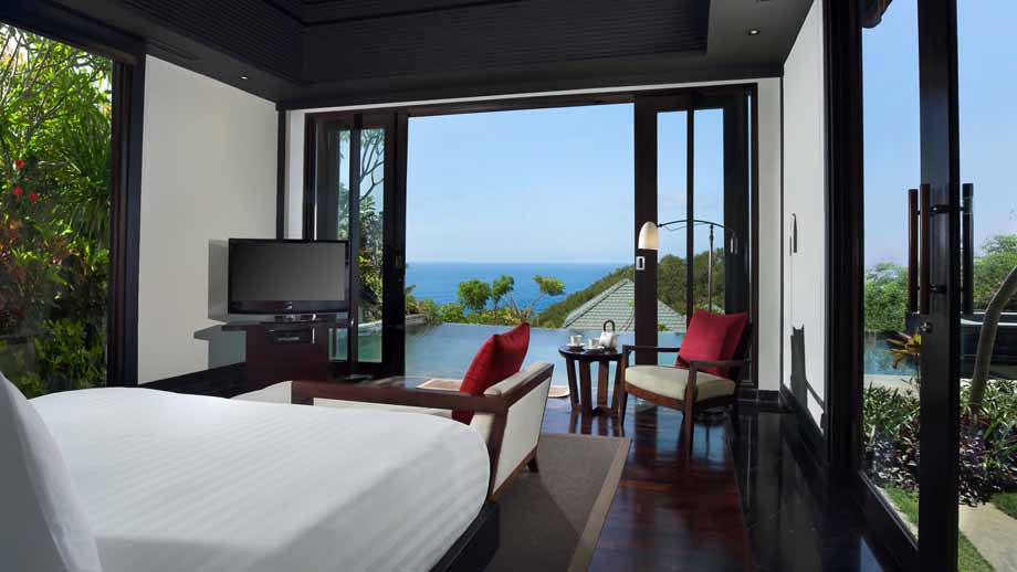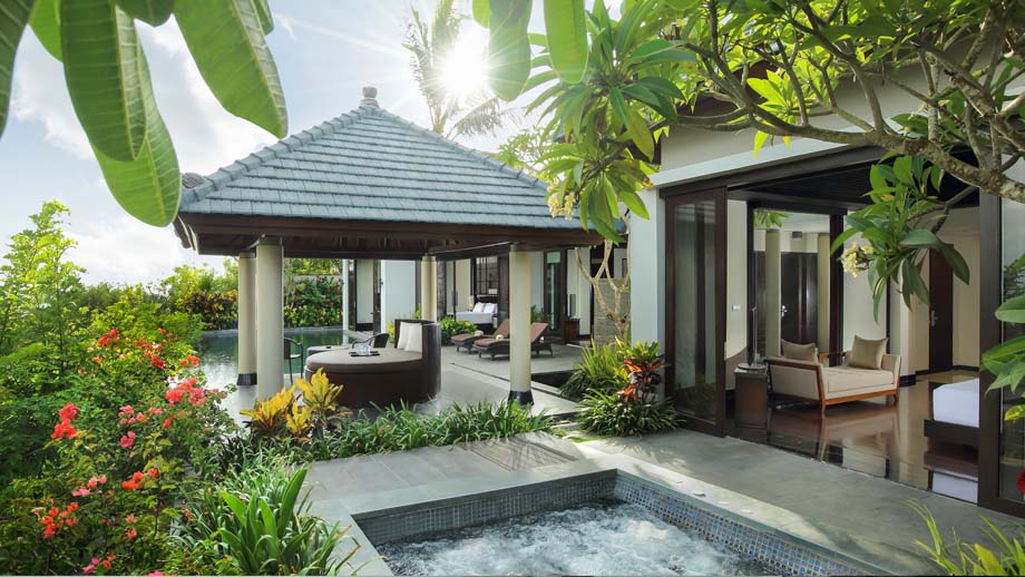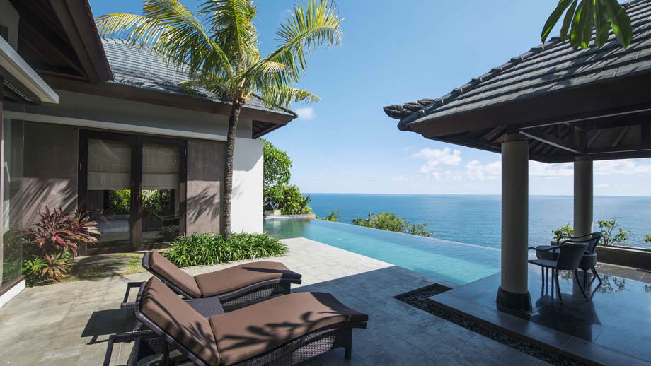 In a 403m2 area, these spacious pool villas have living and dining area, a large marble bathroom, beautiful private garden and an outdoor jet pool. Step out of the bedroom and directly into your 10-metre infinity pool for a swim, or just rest under the shade of your Balinese bale. These villas have garden views, sea views or ocean views.