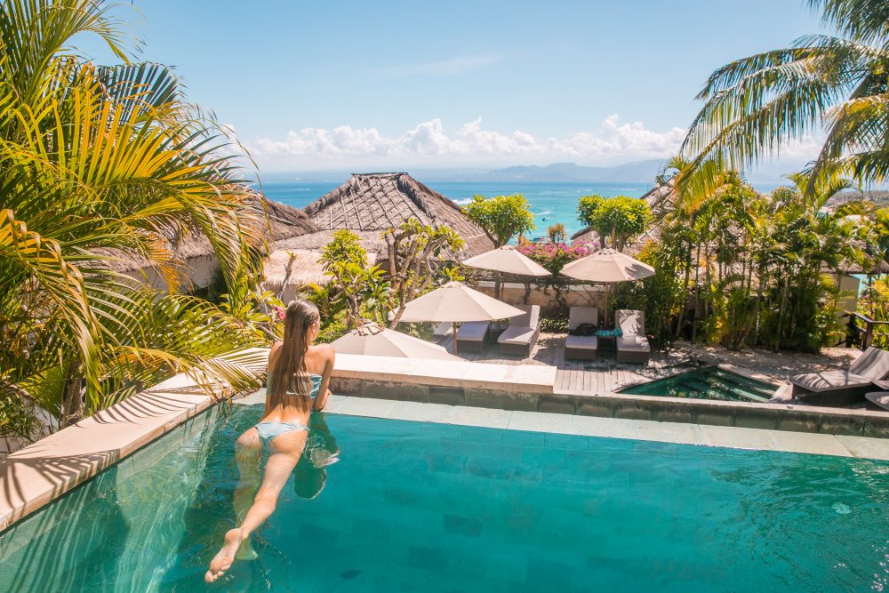 Batu Karang Lembongan Resort and Day Spa offers you luxury Nusa Lembongan accommodation near surf. Carved out of the coral hillside overlooking the Badung Strait, Batu Karang embraces uninterrupted panoramic views of the east coastline of Bali. A perfect option for couples & honeymooners with stunning rooms and beautiful views back to Bali.