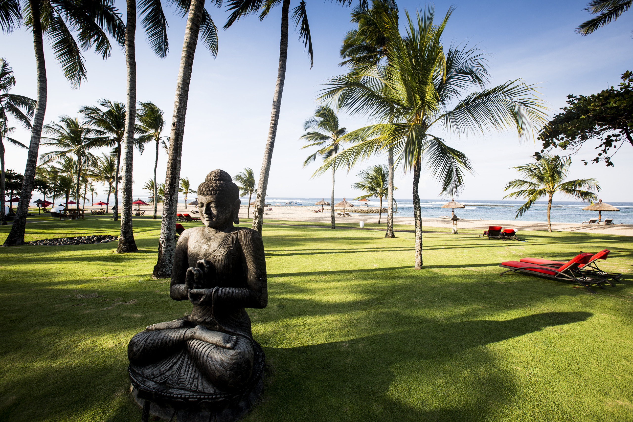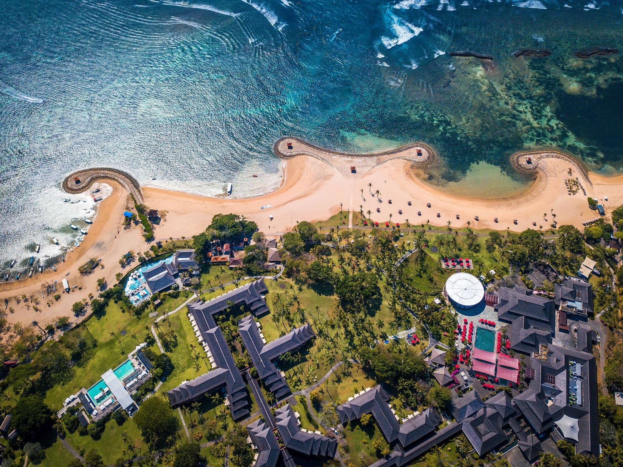 Club Med resort in Nusa Dua is a pure luxury, full-inclusive resort best suited for couples and families. From there, the slopes of the Batur volcano with its terraced paddy fields can be seen in the distance. Relax by the pool or just outside, where beautifully clear waters and fine sandy beaches lay at your feet. If you feel like catching a wave, Sri Lanka right-hander is just outside the resort.