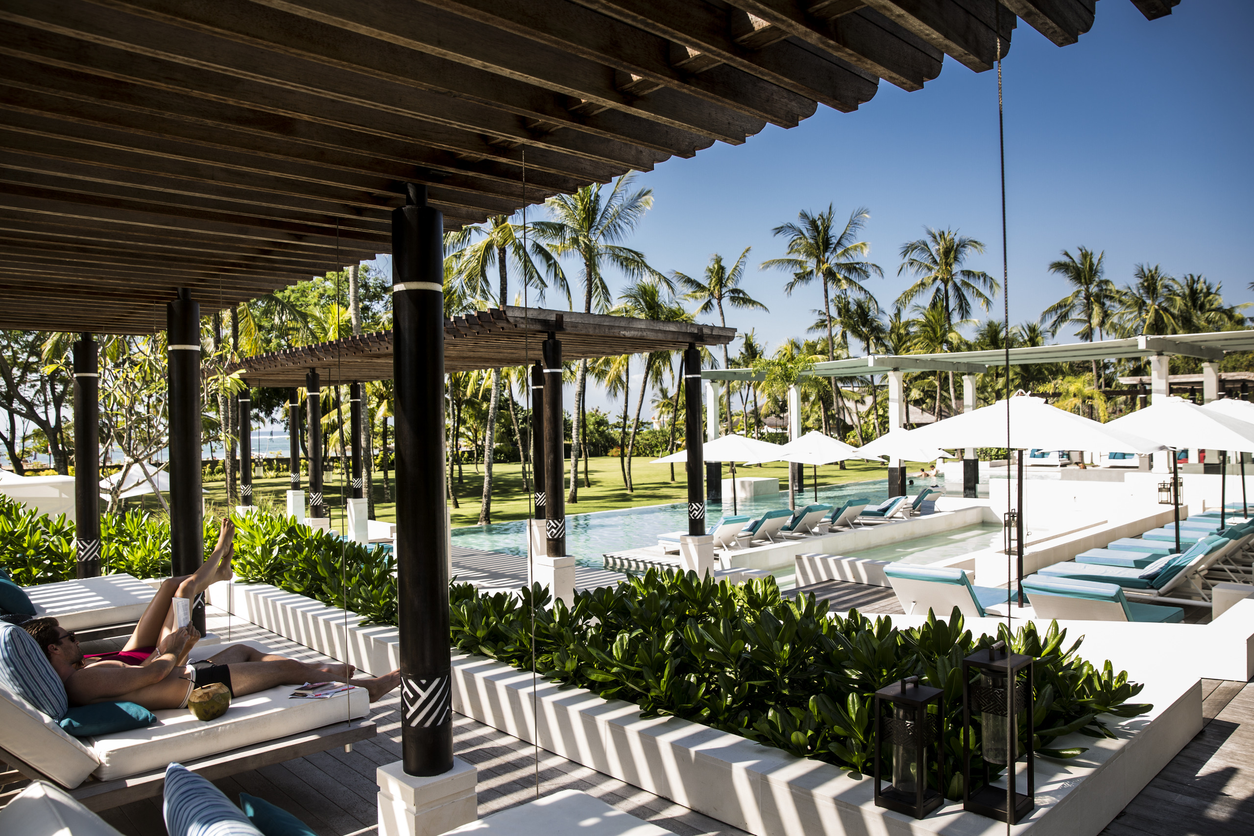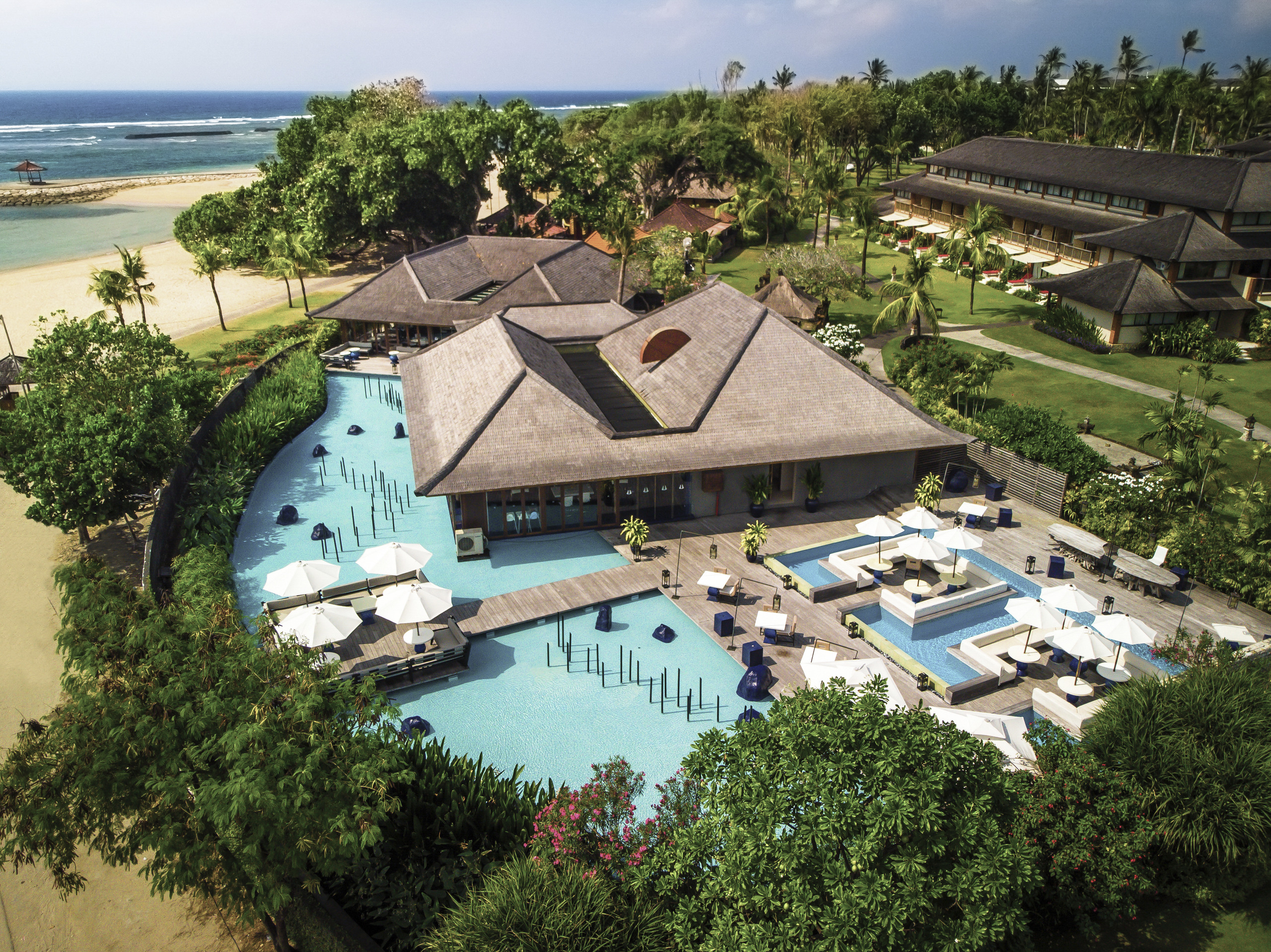 Club Med resort in Nusa Dua is a pure luxury, full-inclusive resort best suited for couples and families. From there, the slopes of the Batur volcano with its terraced paddy fields can be seen in the distance. Relax by the pool or just outside, where beautifully clear waters and fine sandy beaches lay at your feet. If you feel like catching a wave, Sri Lanka right-hander is just outside the resort. Right besides the swimming pool, sip a cocktail at a beautifully designed, modern lounge bar. Club Med Nusa Dua has 393 rooms located in five buildings of 1 to 3 stories designed in traditional Balinese style architecture using wood and natural colours: Flores, Sumba, Java, Lombok and Madura.