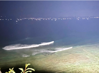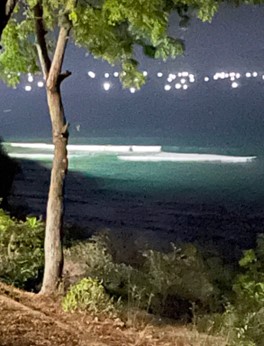 The boat service is same as daytime, except it waits for you while you surf. And they have personal waterproof torches on an arm band for each guest. They’re high-powered aids to add to the fun.