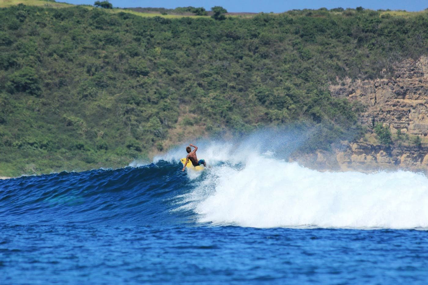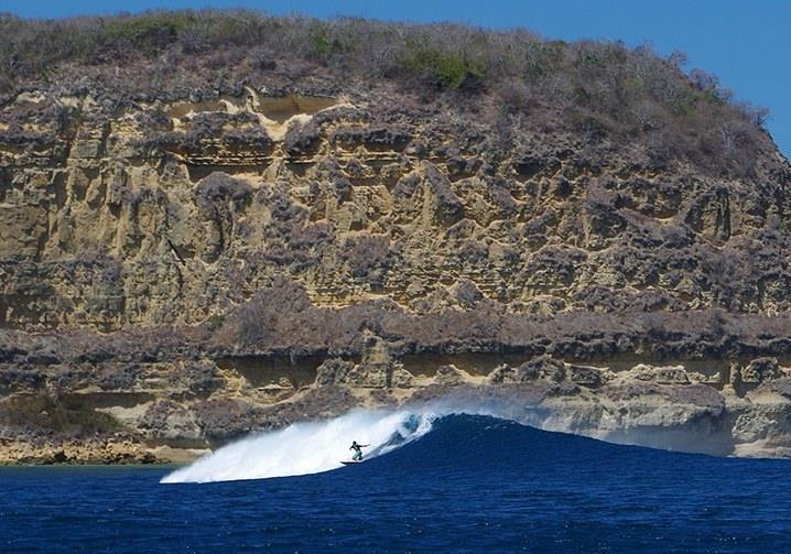 Heaven on the Planet is in beautiful Ekas Bay, south-east Lombok, on 17 hectares above the golden sand cliffs and beaches. It is an eco-friendly resort that utilises the natural ocean breezes rather than air-conditioning. Inside Ekas is best known as a left and right hand peak which breaks in medium and large swells. Outside Ekas, a solid left break, is best on high tide in large swells when a very long, heavy wave peels over 400-500 m down the reef and barrels in sections.