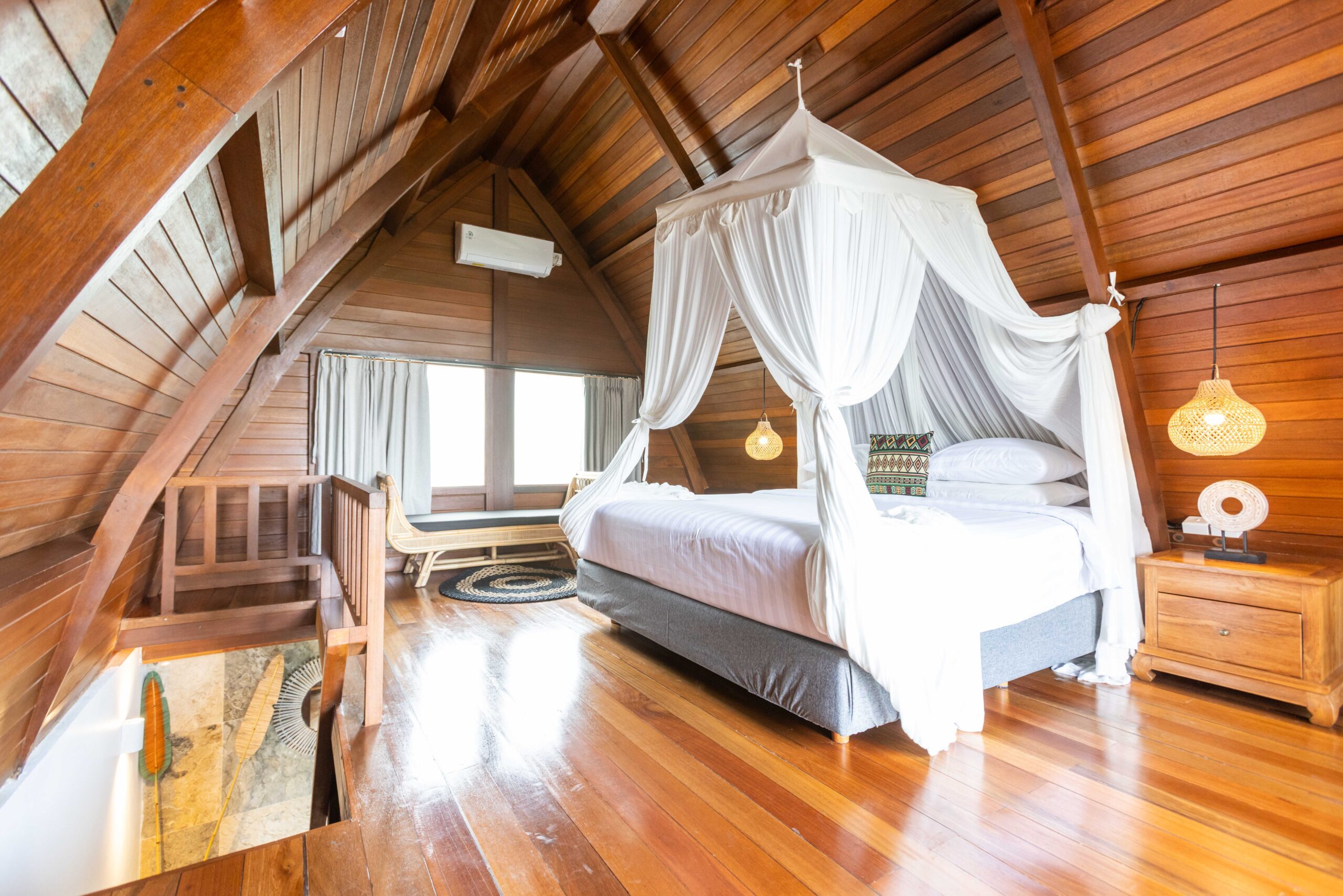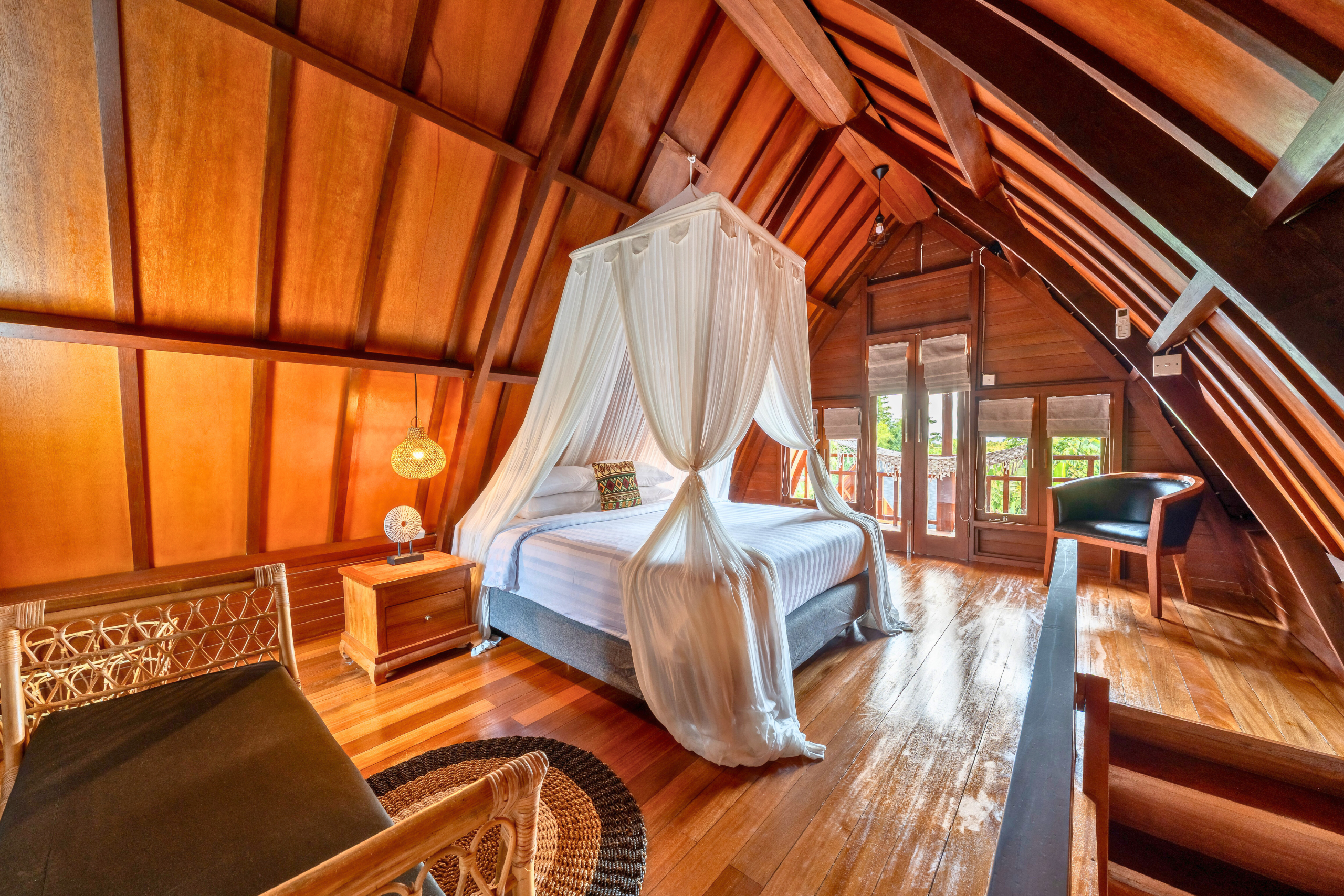 The two level Lumbung Villas are set in a private village accessed through a bamboo arched walkway adjoining the main resort. Made of Bamboo, Banana wood, and Alang Alang roofing, you’re immersed in a quintessential Balinese experience. Lumbung Villas allow the elements to live through and around you, yet are equipped with air-conditioning and ceiling fans. Enjoy the tranquillity of your tropical oasis, sip cocktails in the swim up bar or nap in your hammock.