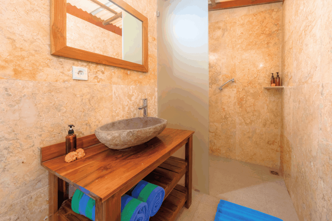 Located on the second floor of the main building complex, these rooms features expansive views over the valley and tree tops towards the ocean. On a clear day it’s possible to see right across to the Kintamani and Mount Batur Volcano’s. Offering ocean and mountain views, yet easy access to our gardens & pool below, the Deluxe High Tide rooms compliments all needs.