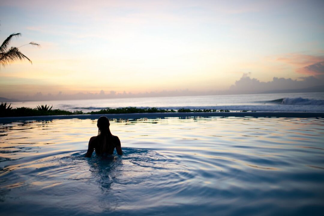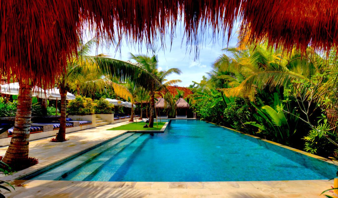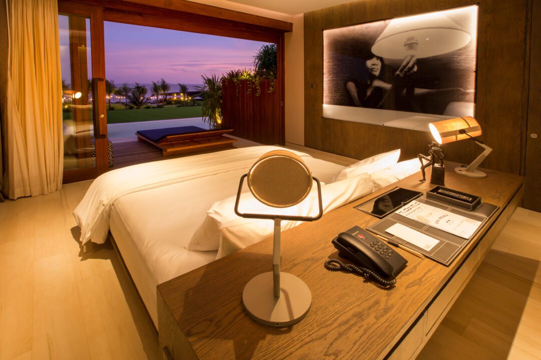 Overlooking the Lombok Strait with island views to Nusa Lembongan and of course the world famous Keramas surf break, the five-star Hotel Komune Beachfront Suites are the perfect place to watch the sunrise over the ocean from your own pool.