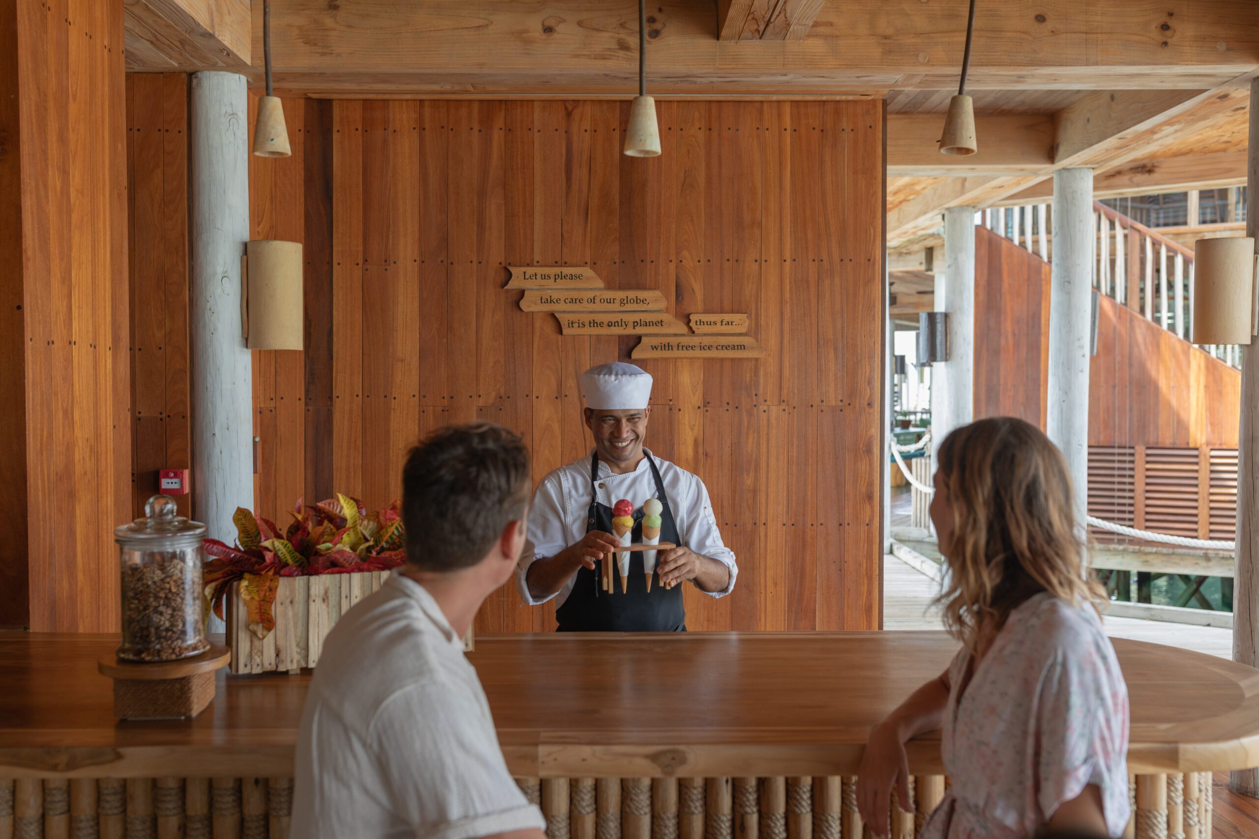 Six Senses Laamu’s bars and restaurants are mostly set over water. An al fresco ice cream parlour and chilled chocolate studio are the go-to for ‘kids’ of all ages.