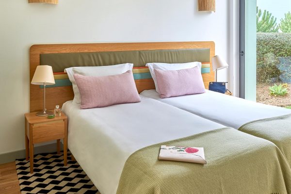 Arranged around an area of indigenous parkland, the Garden Houses at Martinhal Sagres are substantial semi-detached villas set within the perimeter of a large walled garden. The living spaces are all about comfortable luxury: function and form in harmony with elegance and sophistication. British furniture and interiors designer Michael Sodeau has triumphed with a combination of furnishings that are practical but stylish. Natural materials have been used throughout: timber, wicker and cork, and local stone.