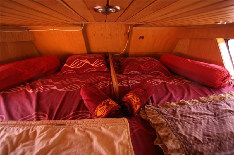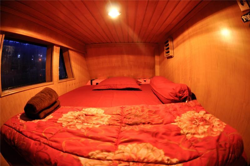 Accommodation on board is in five private twin share cabins. Six of the ten large beds are wide enough to comfortably accommodate a couple, and the other four beds are large enough to accommodate even larger surfers. The maximum number of surfers allowed on board is 10.