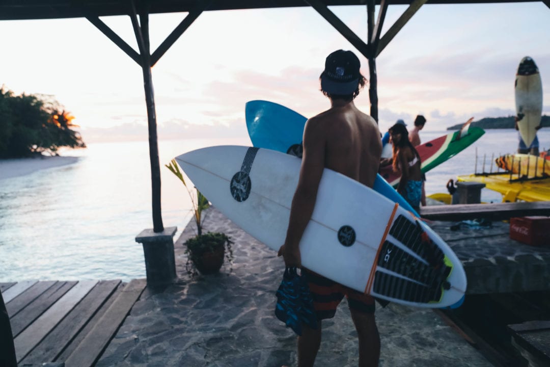 Lessons can be organised directly once in Aloita. They include the surfboard rental. We suggest to bring with you a pair of surf booties for coral reef, a long sleeve rash guard for sun/board protection, and a good sun lotion as you will be a few degrees south of the equator.