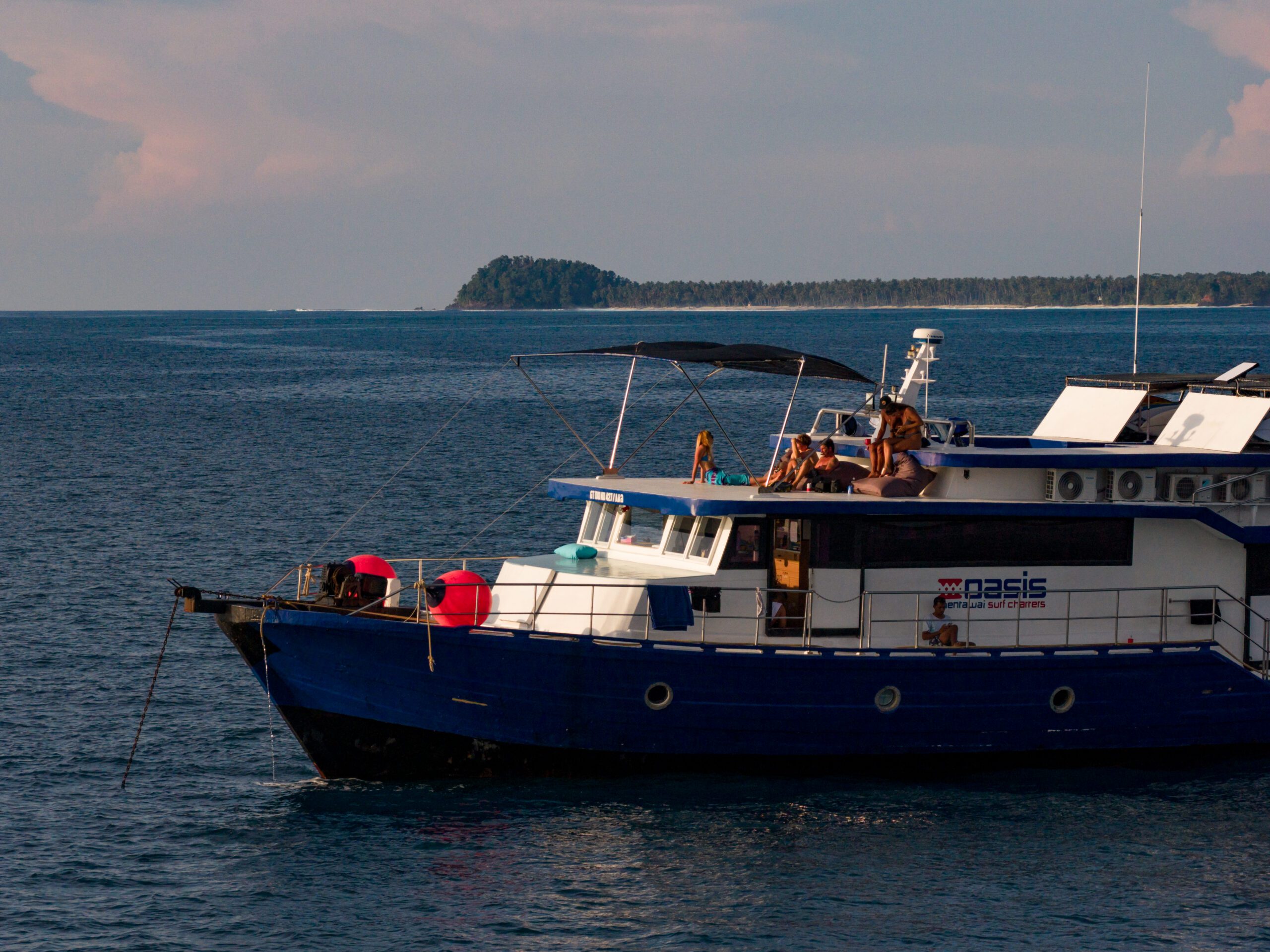 The Oasis is a Mentawai classic, fully renovated and rebuilt in 2024. The new management brings many decades of Mentawai charter experience along with proven, captain and crew. Oasis offers the optimal combination of great value and good size, standard charters can take 10 surfers but can go to 12 if needed. The 80 foot Oasis has 6 roomy twin air-conditioned bedrooms, spacious air-conditioned lounge rooms with entertainment system, outdoor areas, board storage and fast tender.