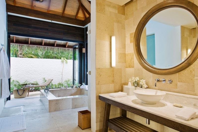 These suites have their own access to the beach and the surrounding gardens give them great privacy. These large suites have floor to ceiling french doors that open up to the terrace and offer access to its own plunge pool. The bedroom has also a living area and an outdoor bathroom (101sqm/1087sqf)