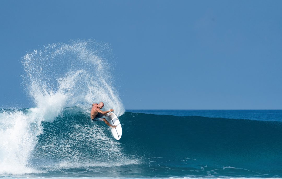 A good quality, private and uncrowded left-hander off the resort that you can paddle out to any time. It works on all tides; mid to high tide offers the best conditions, but it’s still a fun wave and a good ride on a low tide. On big swells, you can get a nice almond barrell on take-off, and come out for a few more turns. Or you can easily avoid the barrell and just do turns for 100-150m.