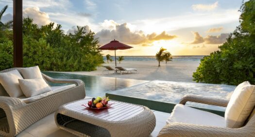 A Beach Villa experience elevated with a private pool. (190 sqm)General Inclusions: welcome drink on arrival with cold towels, accommodation, complimentary water, tea, coffee (Nespresso), popcorn machine, home-made ice-cream, complimentary group 30-minute yoga class all taxes, bicycles provided to each villa, butler service complimentary access to Niyama Private Island’s lounge at seaplane terminal. Price based on twin share of the entire villa
