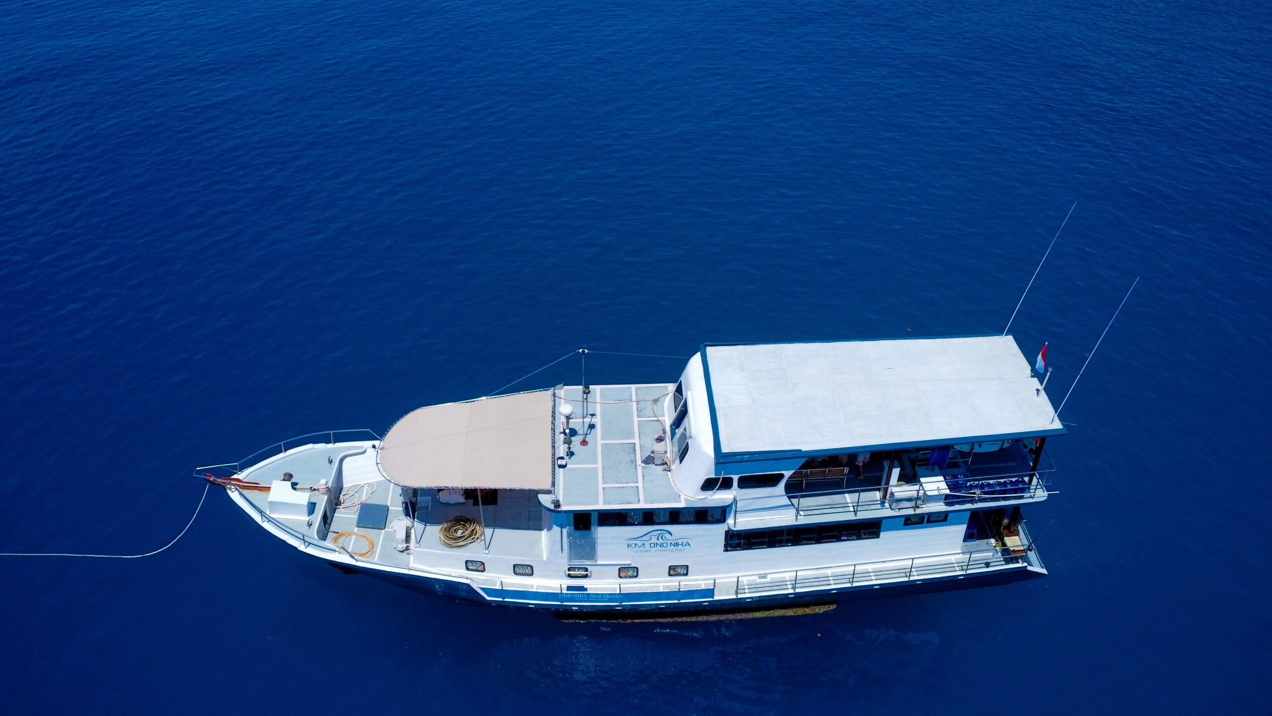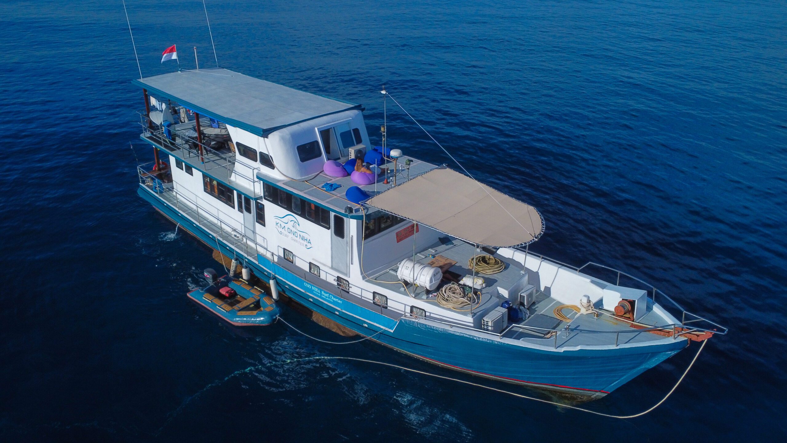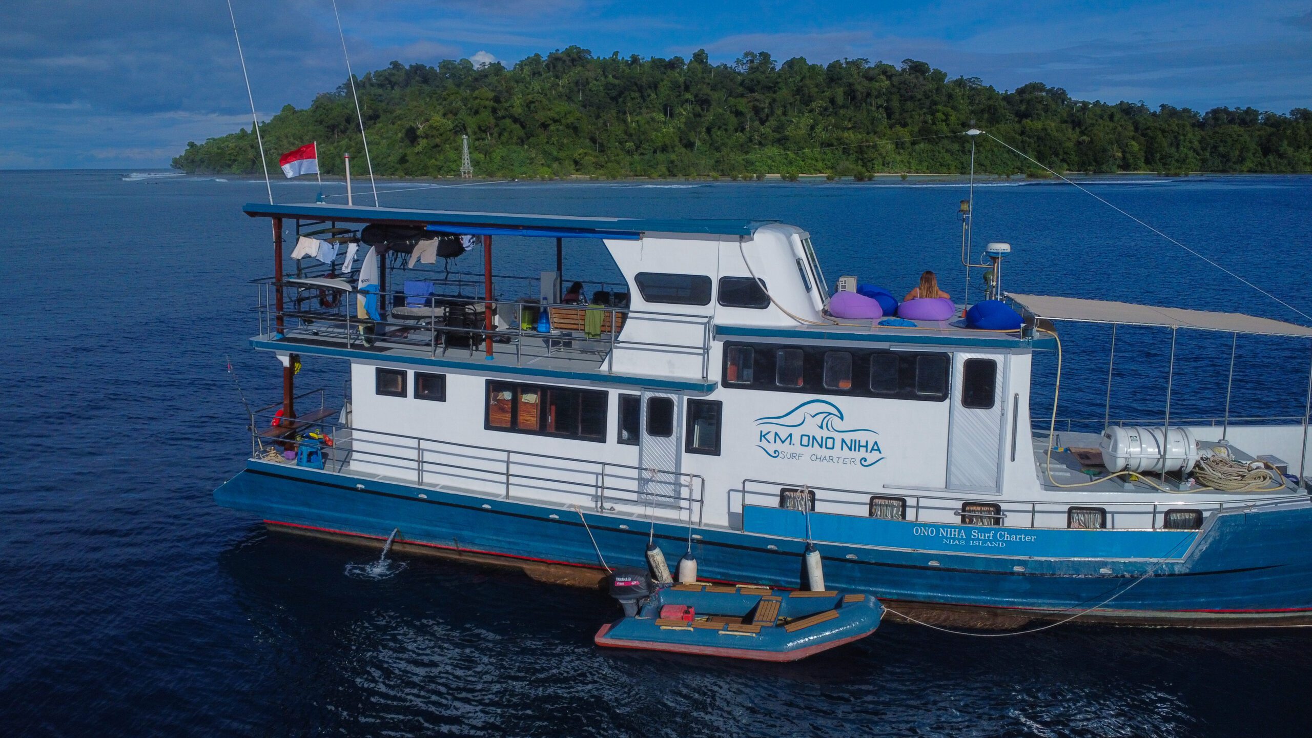 Ono Niha sets off from Lagundri Bay and heads up to Telo Island or up north to the Banyaks through Asu and Hinako islands. You will get to explore magnificent waves and see the beauty of Indonesia and all it has on offer. The boat will let you sleep, relax and surf in perfect comfort. The boat was built locally in Sibolga, North Sumatra, and is operated by a local crew.