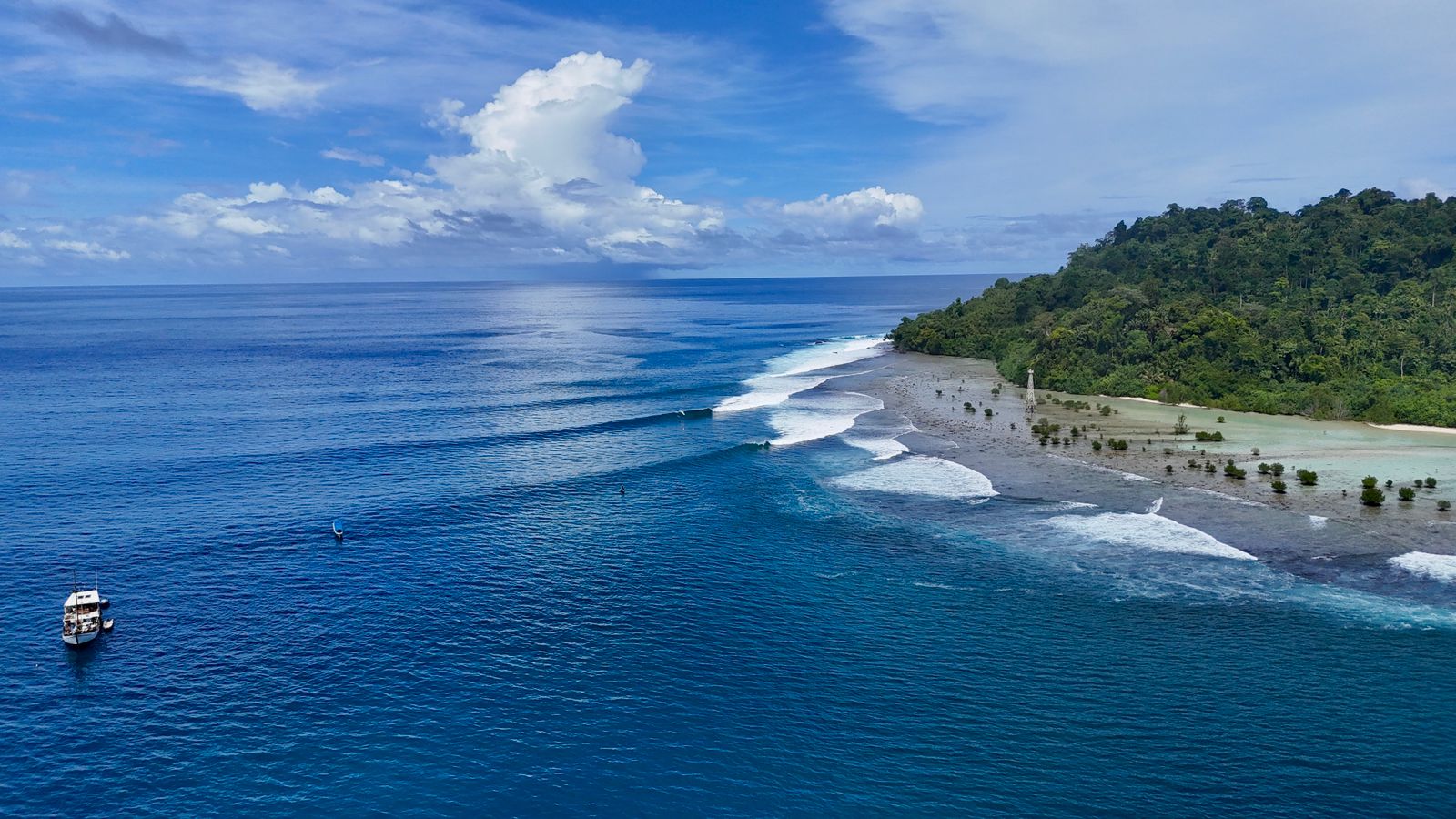 An easy, user-friendly right that runs along the edge of a nearby island. Ideal at 3-5ft. Great for beginners and intermediate surfers, just 10 mins from your lodge.