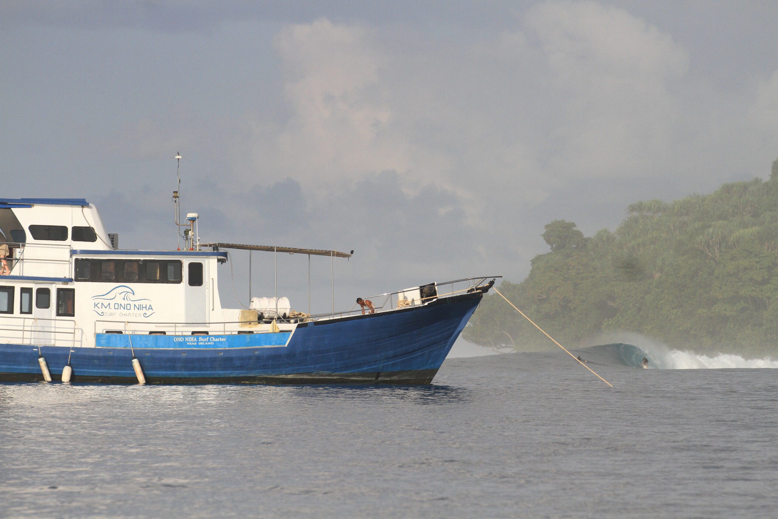 The boat is an Indonesian traditional wooden boat, originally built for traditional Indonesian fishing boats on the West coast of Sumatra – Sibolga area. It was re-built as surf charter in 2015. The meaning of Ono Niha is 'The original people of Nias' (the people born on the island of Nias). She is powered by an RD8 Nissan engine giving her speeds up to 8 knots.